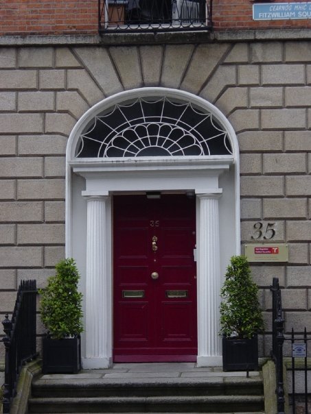 We rode in a huge bus down the myriad streets of Dublin, with all the amenities of home, but the bathroom was a little small. We visited a statue of James Joyce, piling out of the bus with wild abandon, glad not to be cooped up anymore. But my eye was drawn to the red door of the house across the street. For some reason the pattern above it reminded me of a spider’s web, delicately thin yet architecturally sound, and beautiful to observe. There is a symmetry to it that is undeniable, and it held my gaze for more than a few beats of my heart. I knew I had few pictures left on my memory stick but I couldn’t help myself. I took it out, and while everyone else was listening to various tales of Mr. Joyce and his exploits I was zooming in and focusing on this door, hoping no one would open it at that moment and destroy the moment suspended in time.